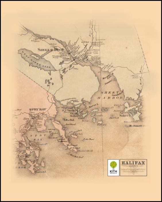 This community is seventy miles east of Dartmouth. The Indian name was Weijooikk, 'flowing wildly' or 'running crazily'. The Harbour was called Port North as late as 1807. By 1818 the name 'Sheet Harbour' had come into use, given because of a large white cliff at the harbour entrance which appeared like a sheet spread out to dry.